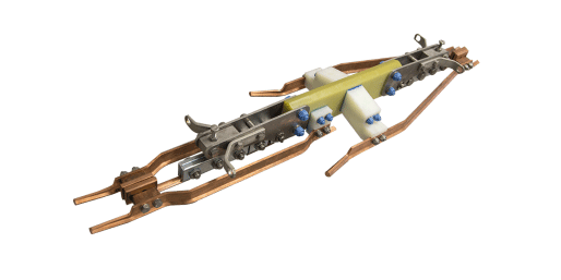 L’isolateur de section permet le passage du pantographe dans les deux sens. Mais, la circulation est recommandée dans le sens des patins en position ouverte.