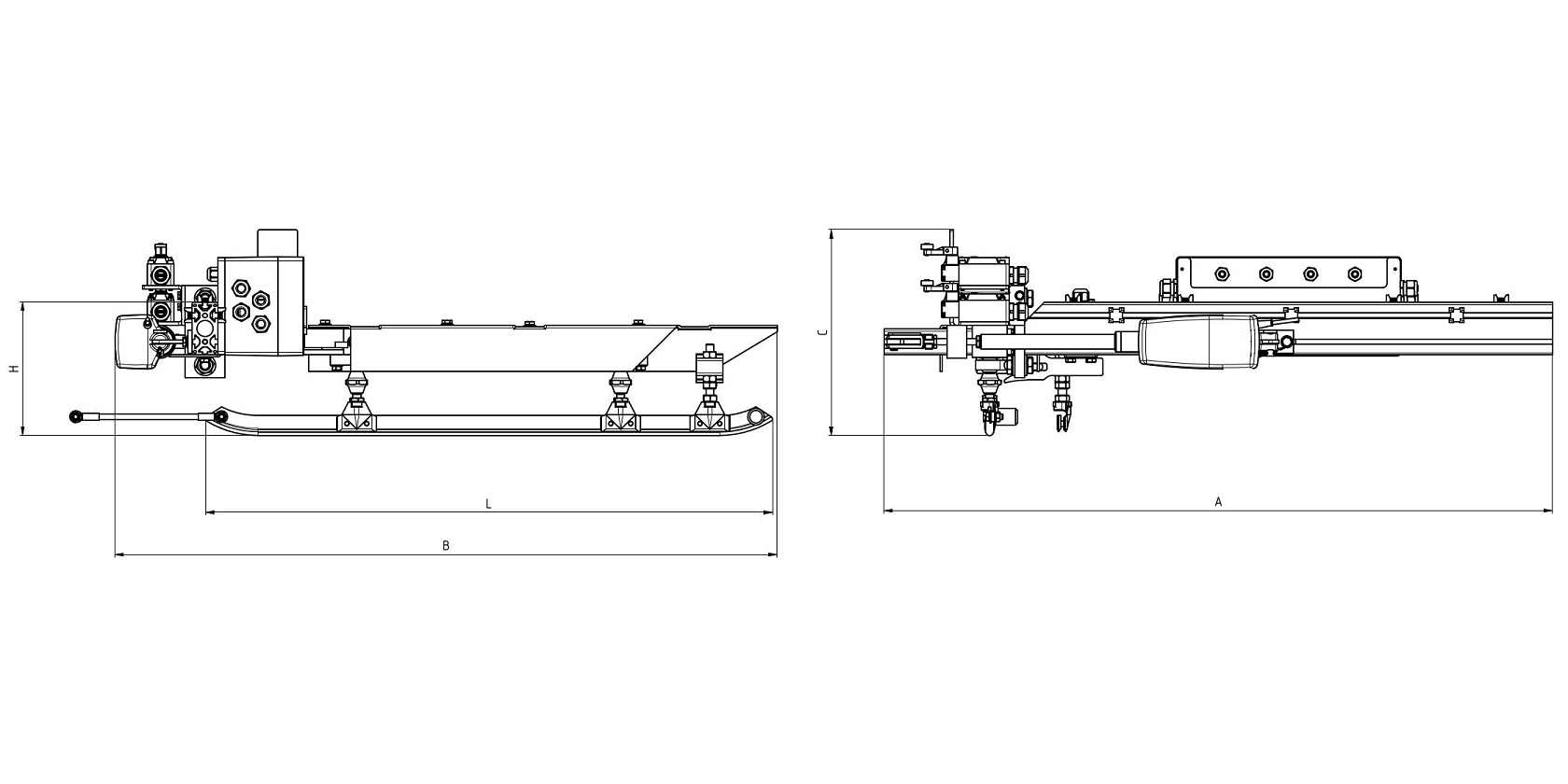 Pont de ligne de contact électrique TRW selon MRL, avec boîte de commutation, version gauche, tension d'entraînement 24 V DC