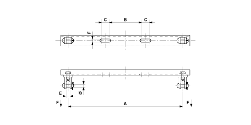 Traverse droite avec fourche sur poutrelles à larges ailles