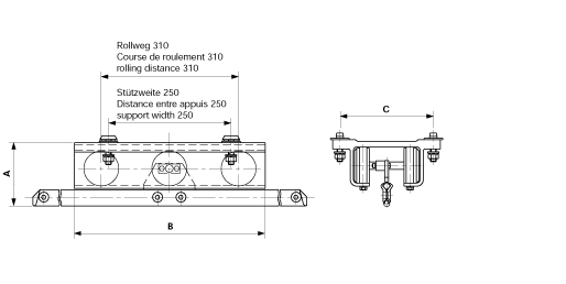 Support mobile L = 420 mm pour montée du fil de contact 3.0%, porteur du f.c. L = 1200 mm