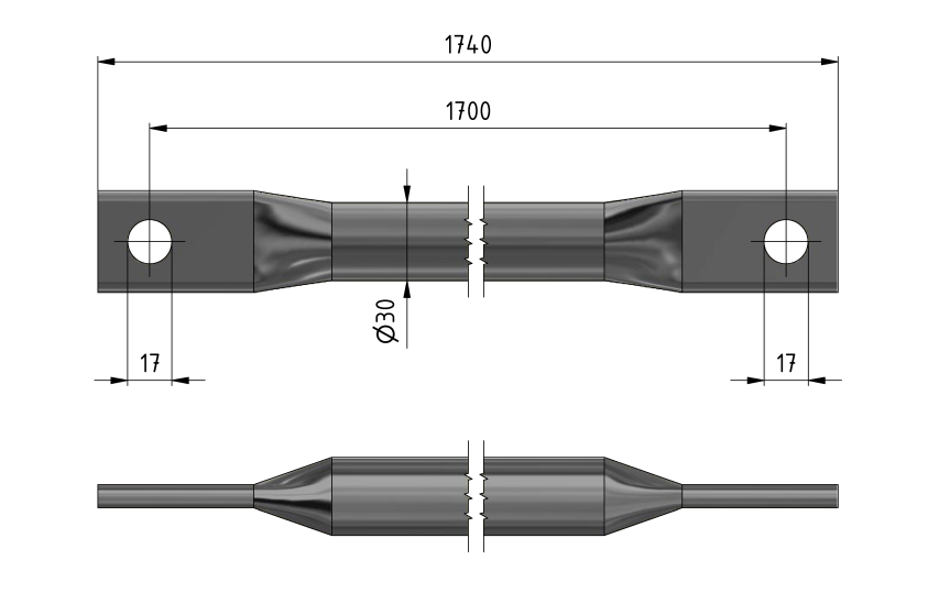 Tringlage de commande droit, L= 1700 mm