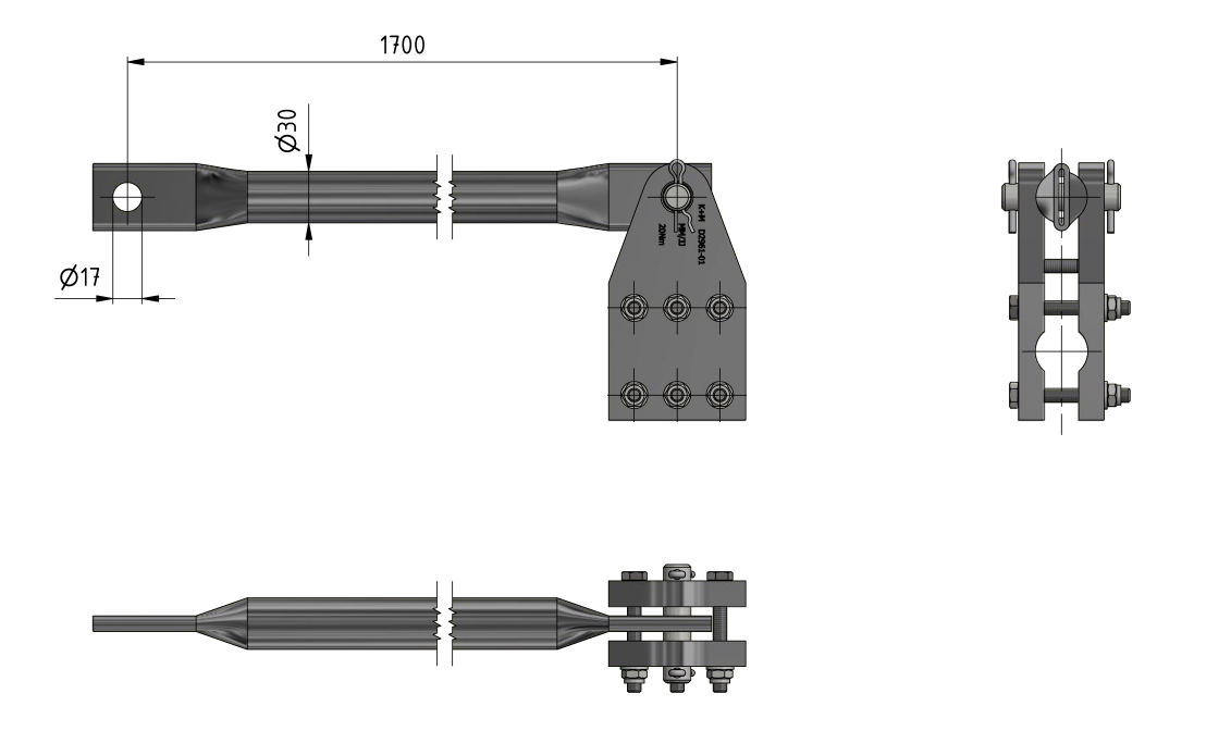 Tringlage de commande droit complet, L= 1700 mm, pour sectionneurs Duplex et rotatif Alpha
