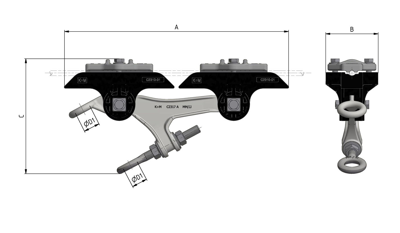 L’utilisation de ce type de pièce pour la suspension de ligne aérienne de contact nécessite des isolations supplémentaires entre les points de fixation.La fixation est possible sur câble acier galvanisé et sur câbles acier / cuivre.