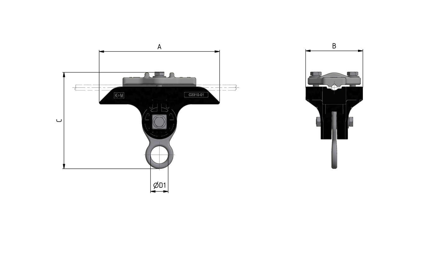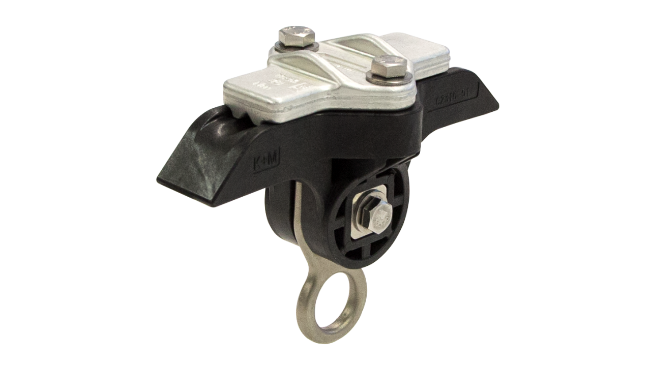 L’utilisation de ce type de pièce pour la suspension de ligne aérienne de contact nécessite des isolations supplémentaires entre les points de fixation.La fixation est possible uniquement sur câble synthétique avec manteau de protection.