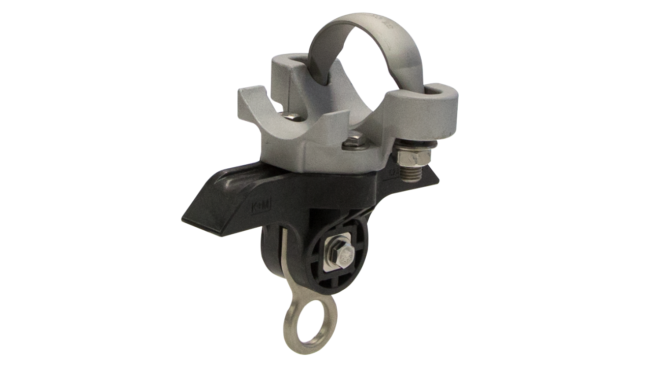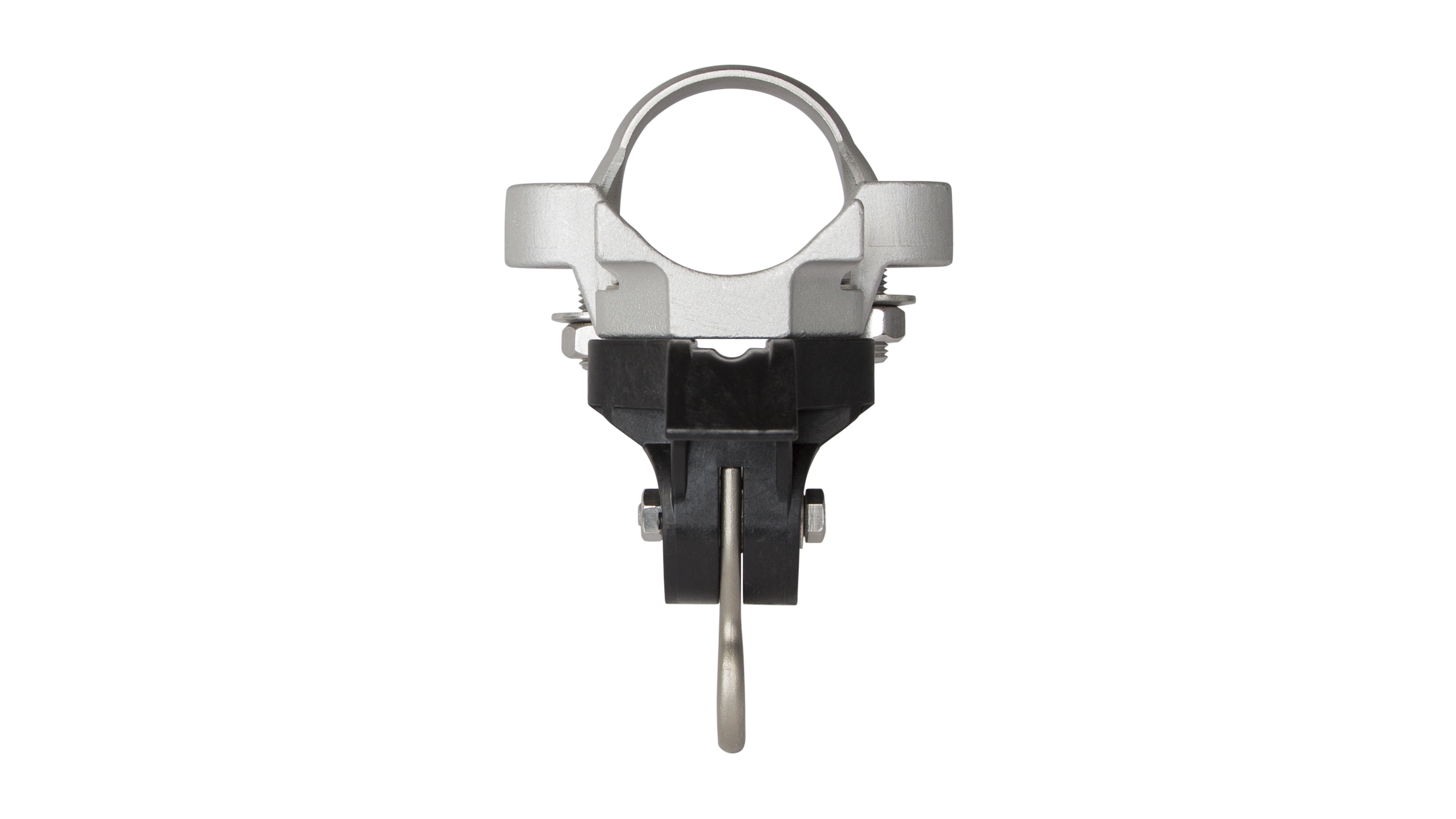 L’utilisation de ce type de pièce pour la suspension de ligne aérienne de contact nécessite des isolations supplémentaires entre les points de fixation.Option : en remplaçant l’étrier fileté sur tube, la fixation est possible sur des Ø de 40 à 80 mm.