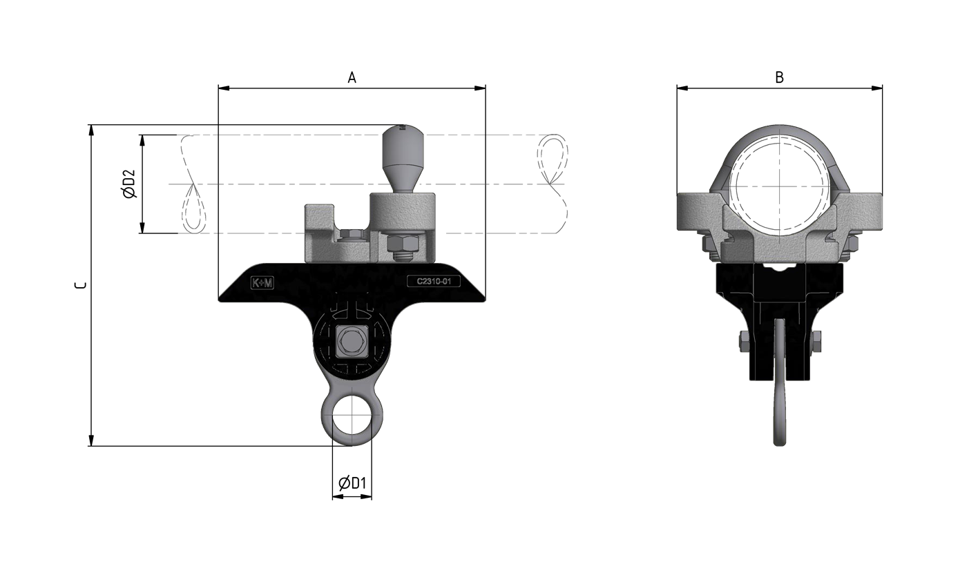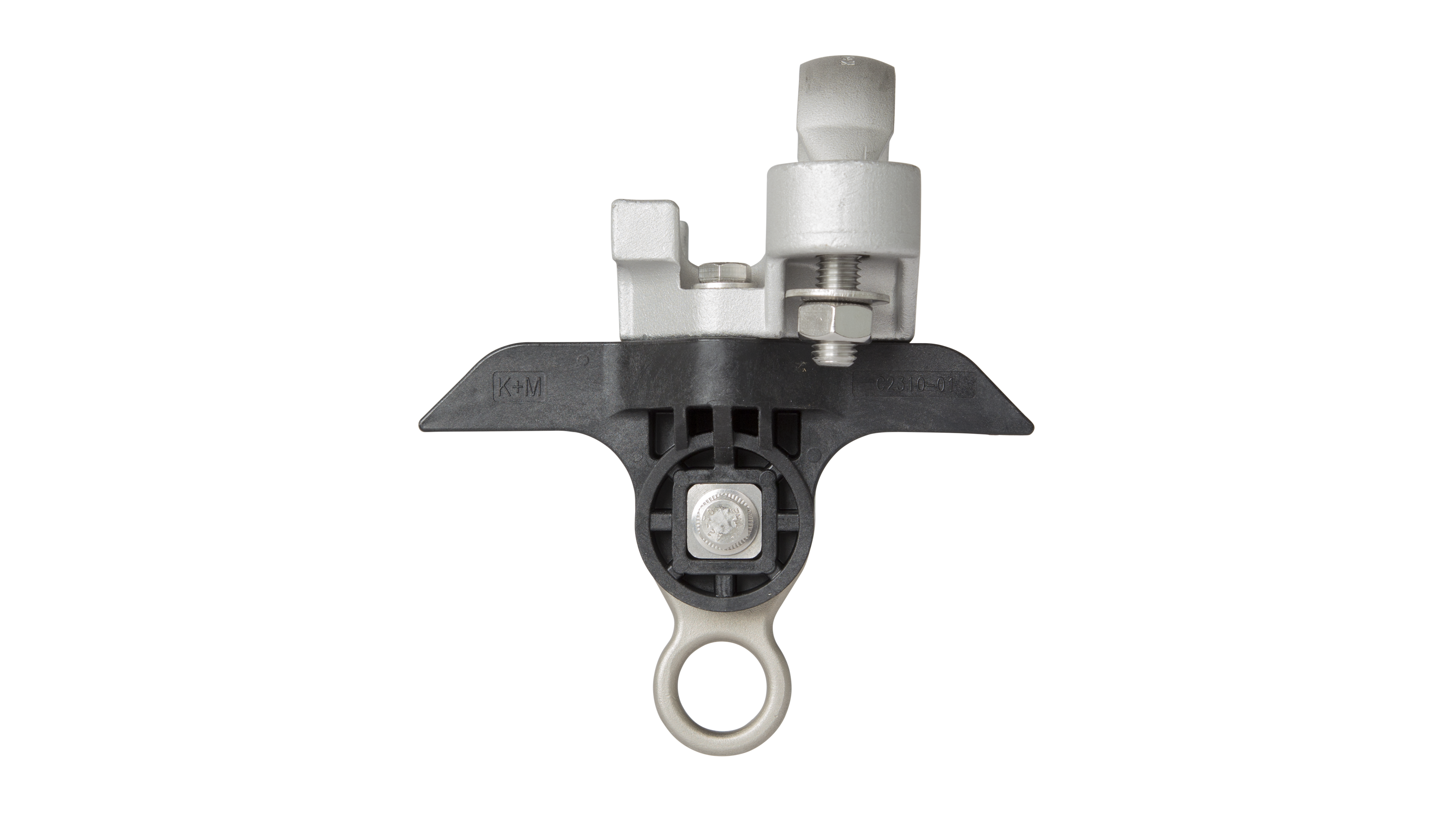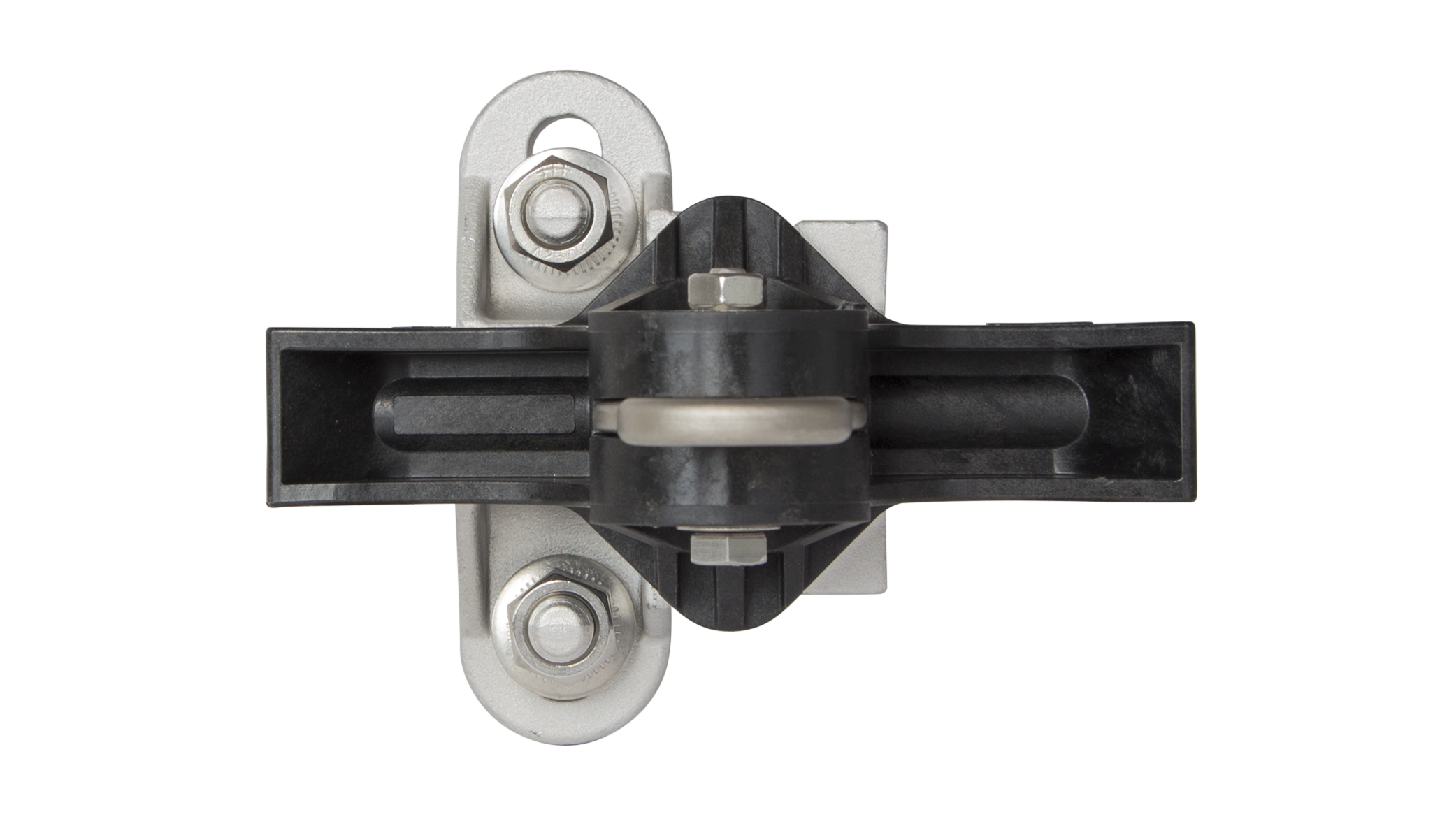 L’utilisation de ce type de pièce pour la suspension de ligne aérienne de contact nécessite des isolations supplémentaires entre les points de fixation.Option : en remplaçant l’étrier fileté sur tube, la fixation est possible sur des Ø de 40 à 80 mm.