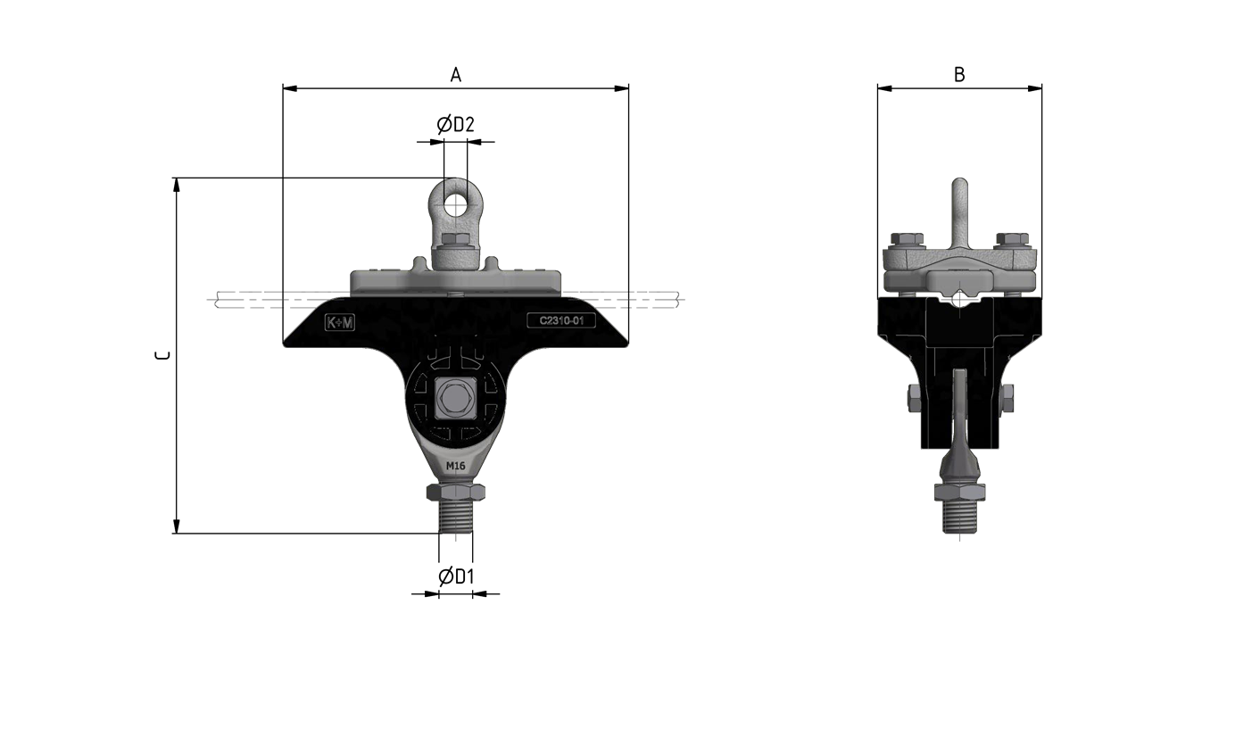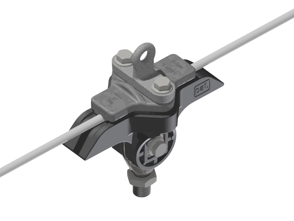 L’utilisation de ce type de pièce pour la suspension de ligne aérienne de contact nécessite des isolations supplémentaires entre les points de fixation.La fixation est possible sur câble acier galvanisé et sur câbles acier / cuivre.