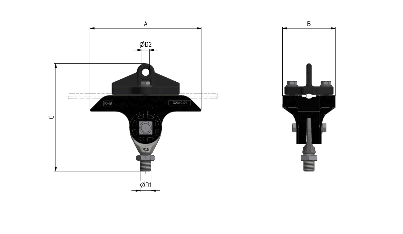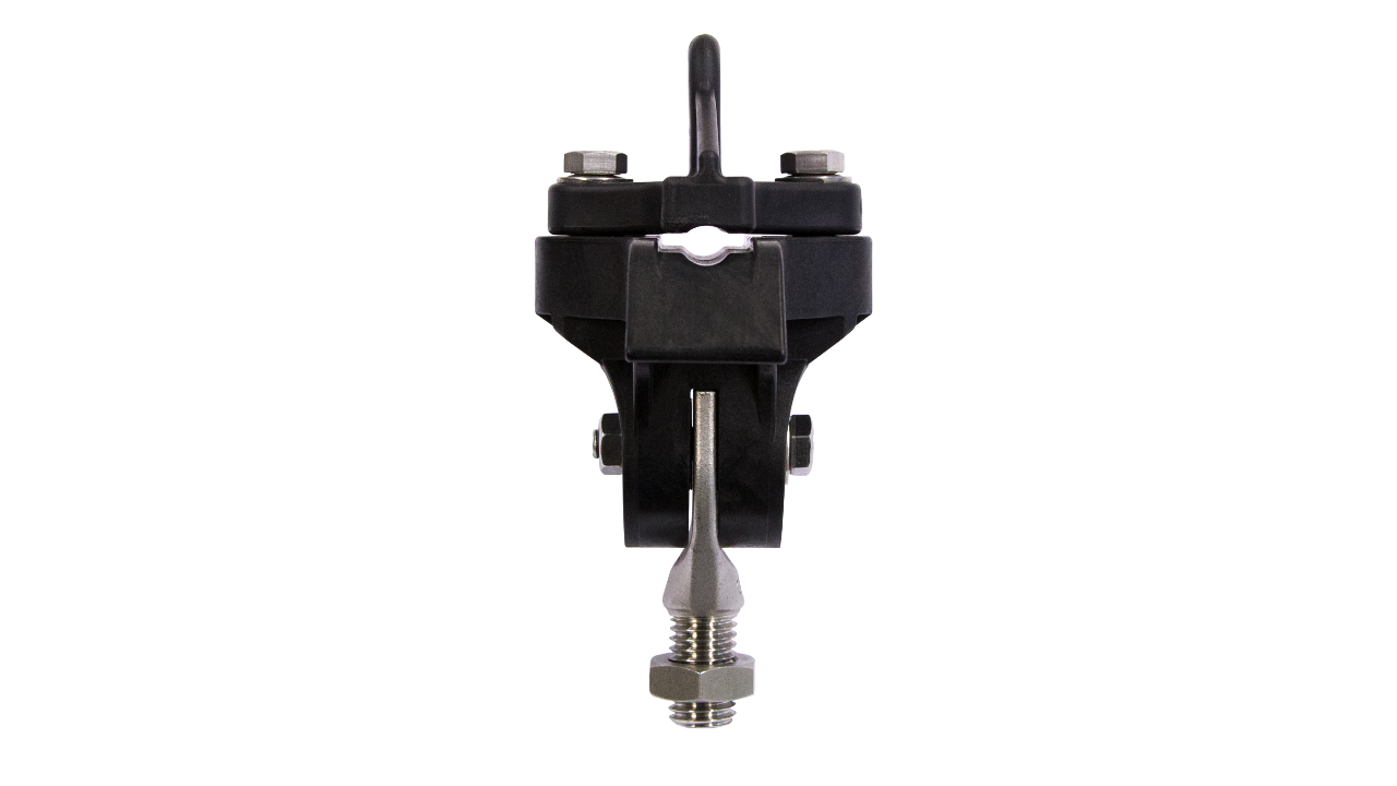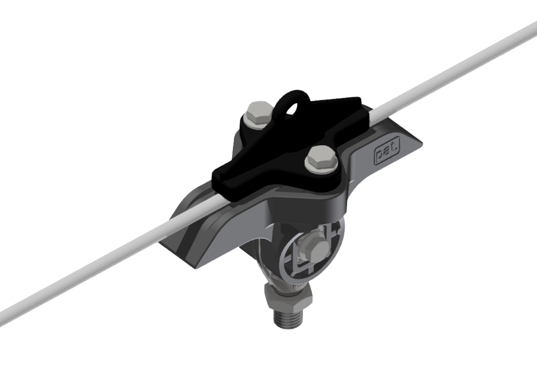 L’utilisation de ce type de pièce pour la suspension de ligne aérienne de contact nécessite des isolations supplémentaires entre les points de fixation.La fixation est possible uniquement sur câble synthétique avec manteau de protection.