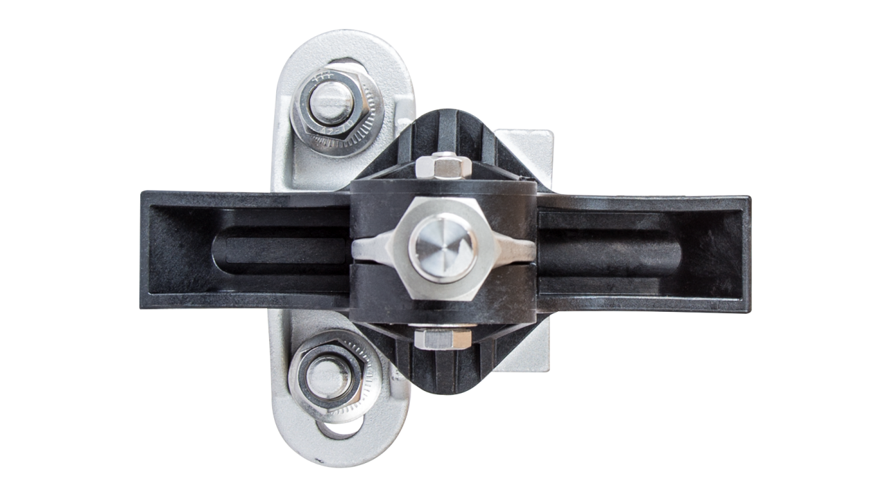 L’utilisation de ce type de pièce pour la suspension de ligne aérienne de contact nécessite des isolations supplémentaires entre les points de fixation.Option : en remplaçant l’étrier fileté sur tube, la fixation est possible sur des Ø de 40 à 80 mm. En remplaçant la partie supérieure de fixation, il est possible de se fixer sur câble ou sur ouvrage.