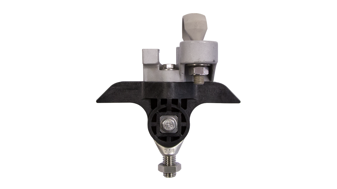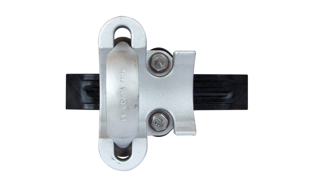 L’utilisation de ce type de pièce pour la suspension de ligne aérienne de contact nécessite des isolations supplémentaires entre les points de fixation.Option: en remplaçant l’étrier fileté sur tube, la fixation est possible sur des Ø de 40 à 80 mm. En remplaçant la partie supérieure de fixation, il est possible de se fixer sur câble ou sur ouvrage.