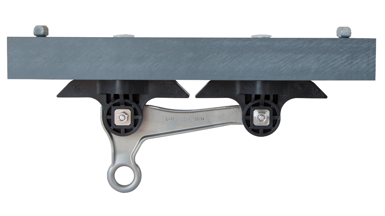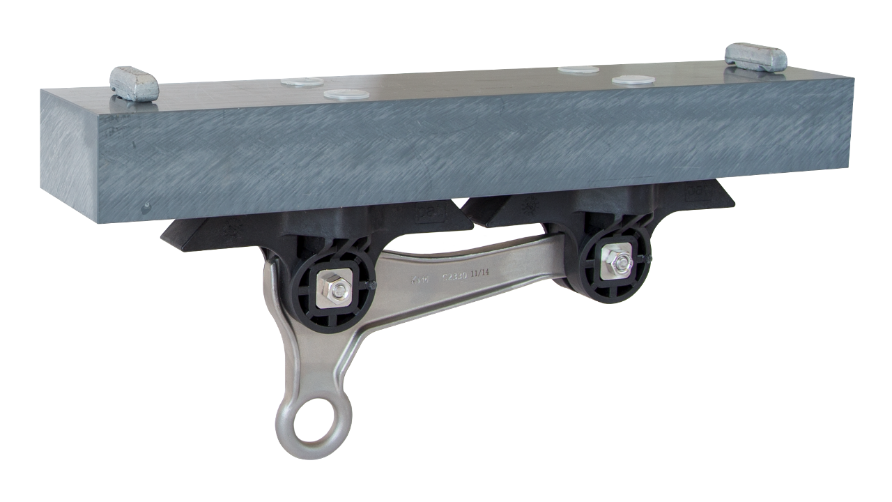 Corps isolant pour fixation au rail d’ancrage type 3B, en courbe moyenne jusqu’en courbe serrée. Prévu pour fil de suspension et bras de retenue de tram.Spécifications