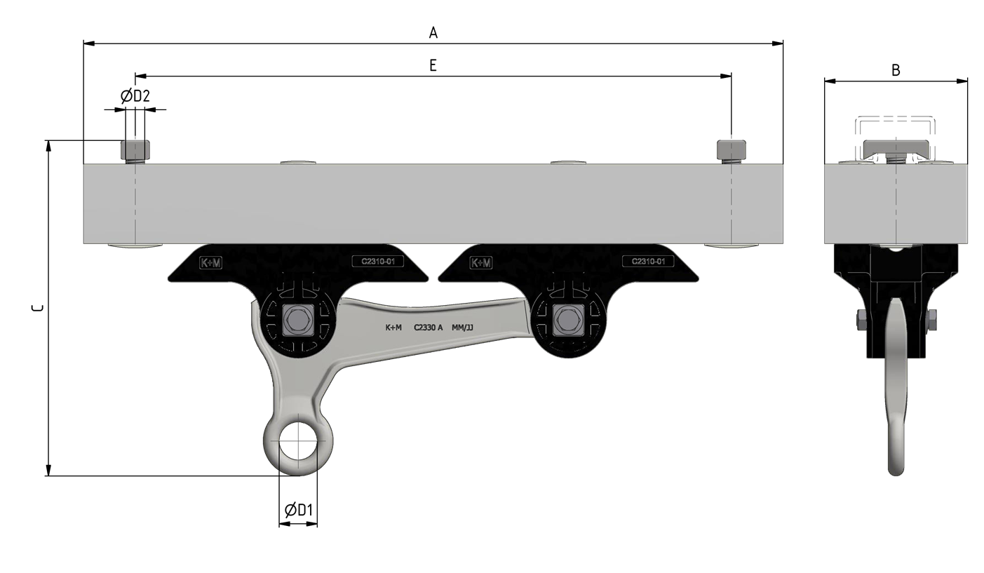Corps isolé sur rail d'ancrage type 3 B exclusif vis de suspension KUSYS type 2 avec œillet de suspension simple