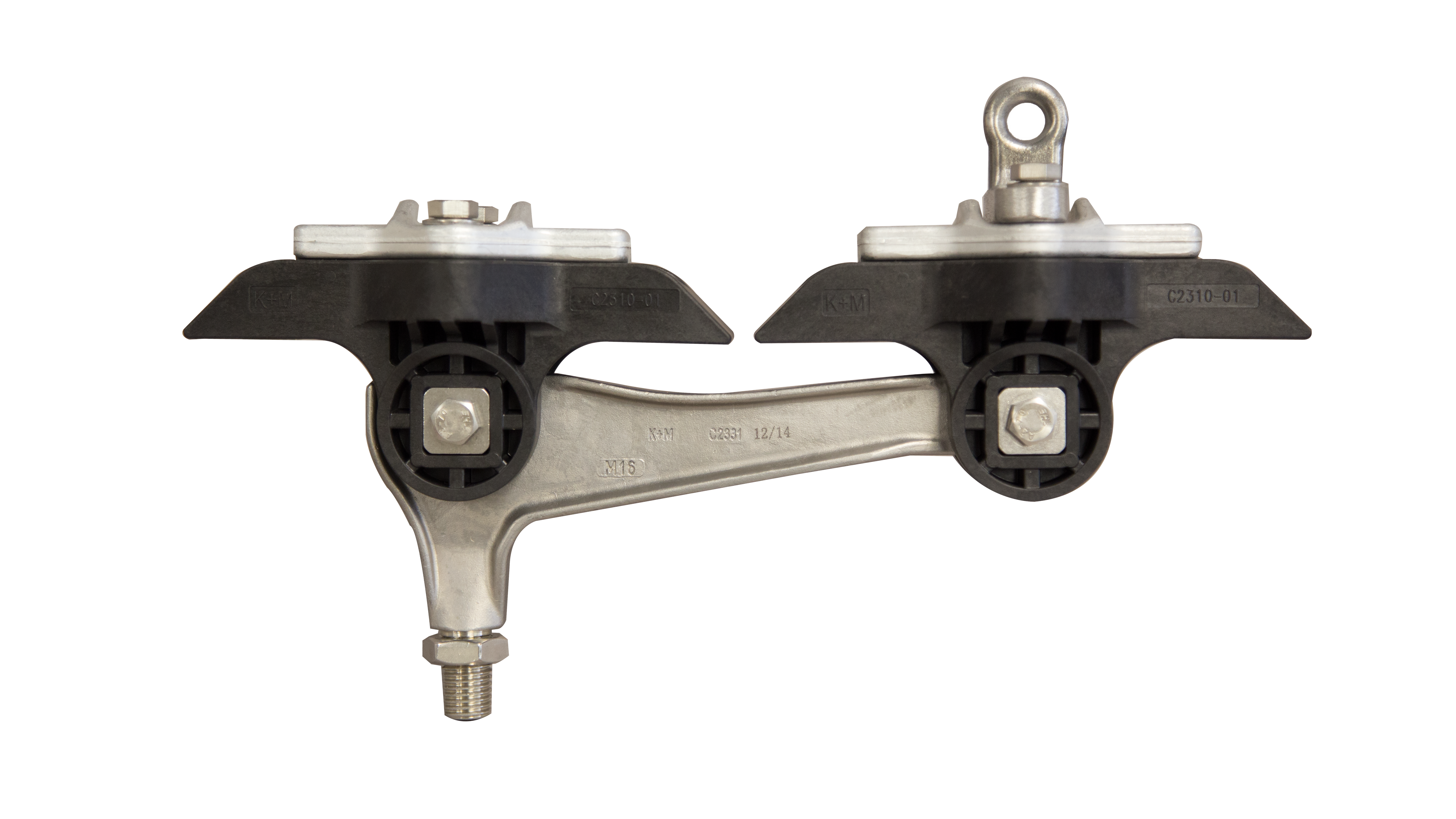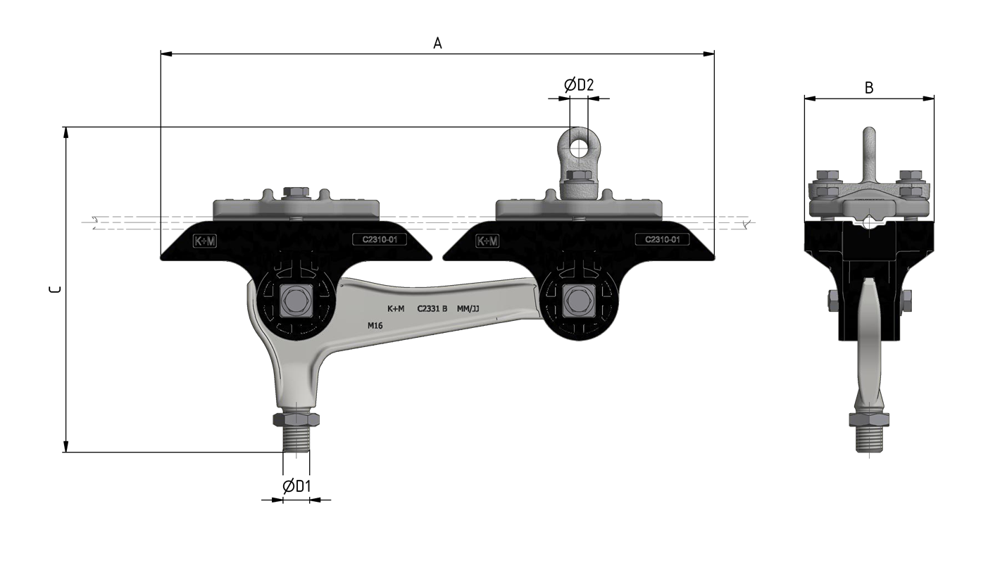 L’utilisation de ce type de pièce pour la suspension de ligne aérienne de contact nécessite des isolations supplémentaires entre les points de fixation.La fixation est possible sur câble acier galvanisé et sur câbles acier / cuivre.