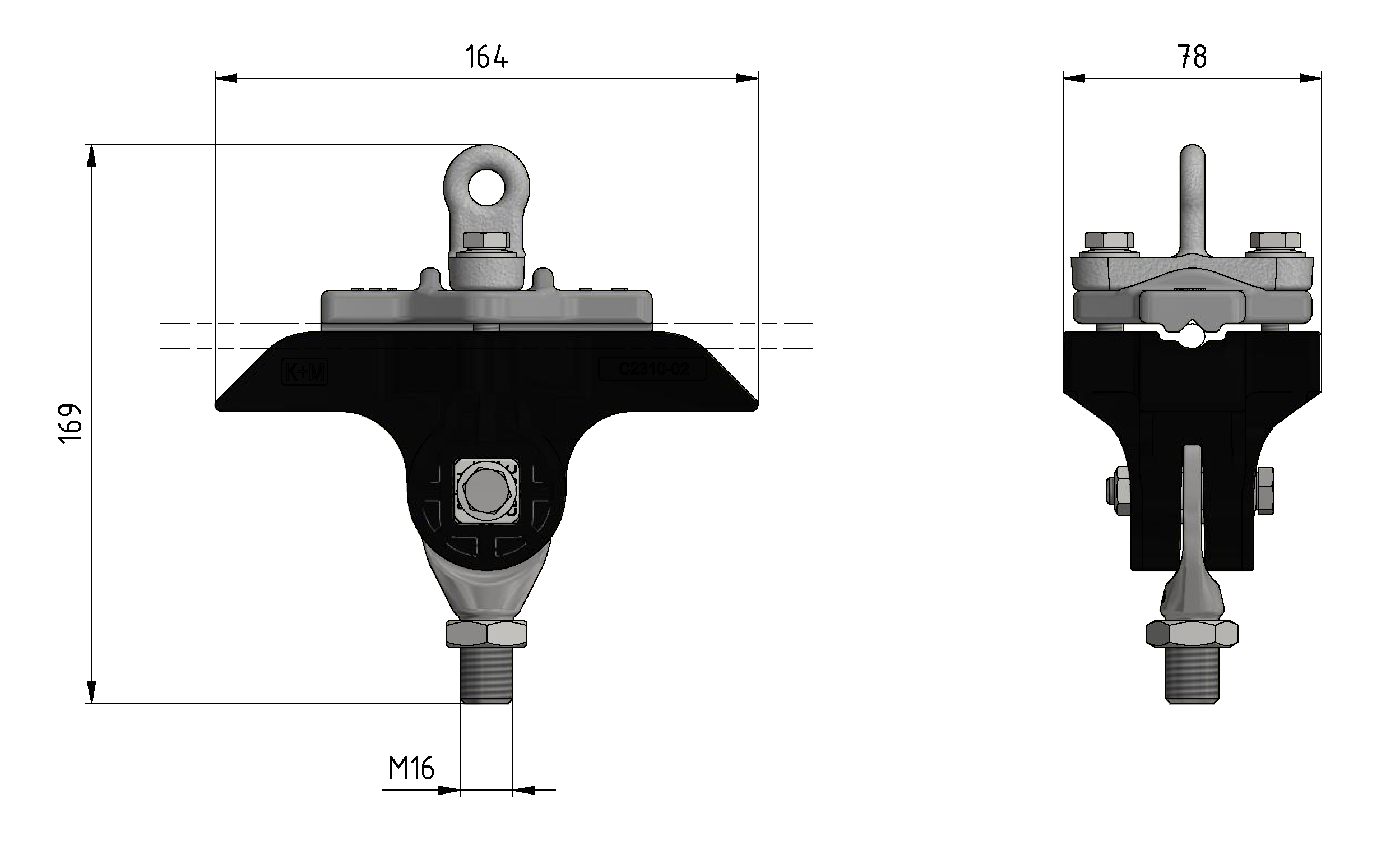 Corps isolé sur câble KUSYS type 1 avec tige fileté M16 orientable, avec oeillet de suspension