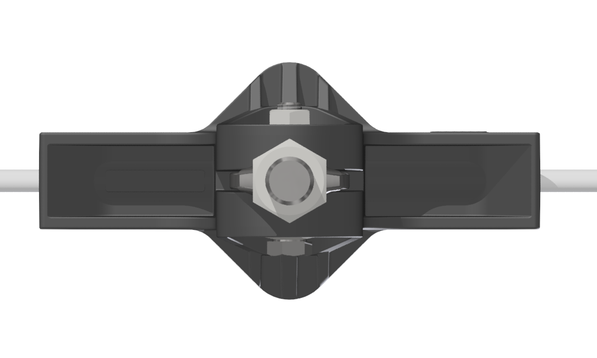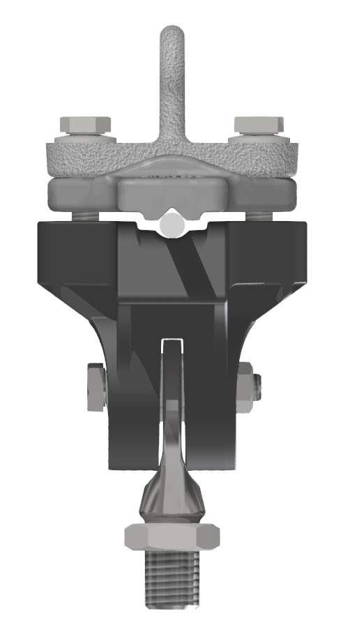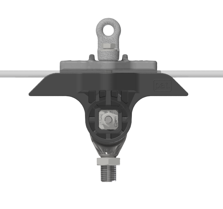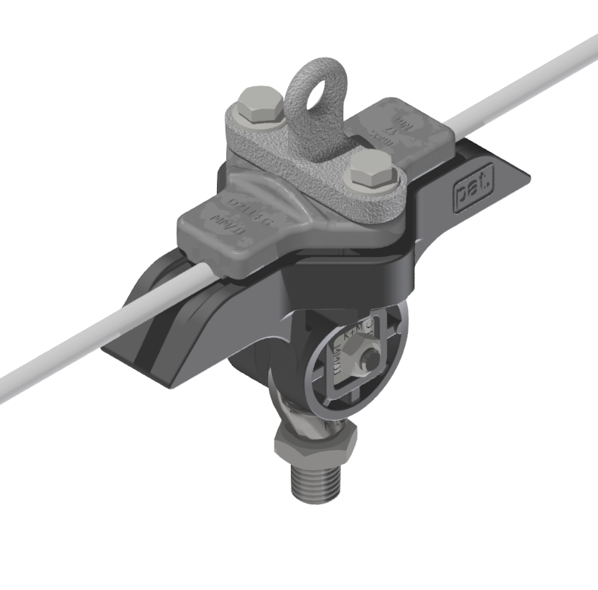 L’utilisation de ce type de pièce pour la suspension de ligne aérienne de contact nécessite des isolations supplémentaires entre les points de fixation.La fixation est possible sur câble acier galvanisé et sur câbles acier / cuivre.