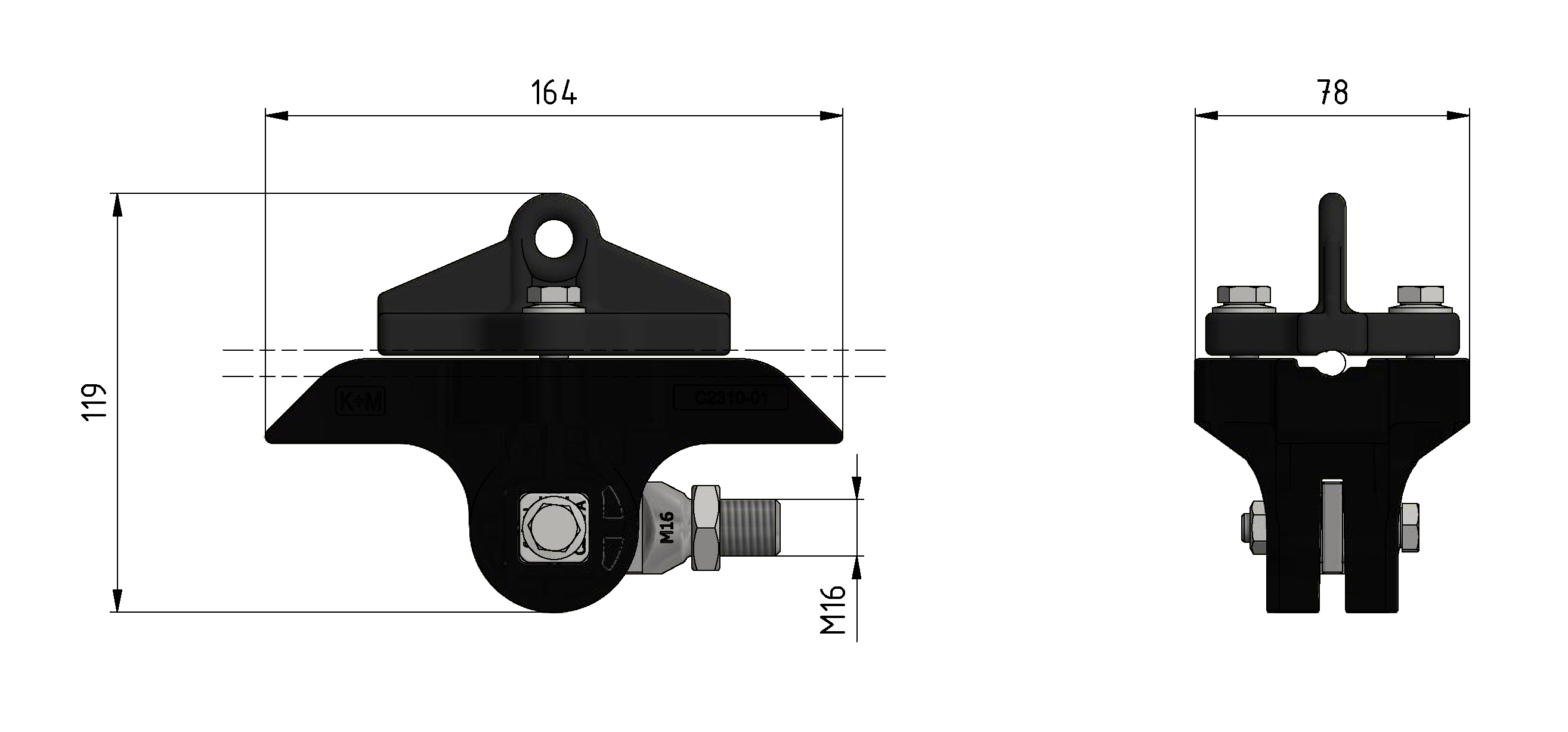 Corps isolé sur câble KUSYS type 1 avec tige fileté M16 orientable