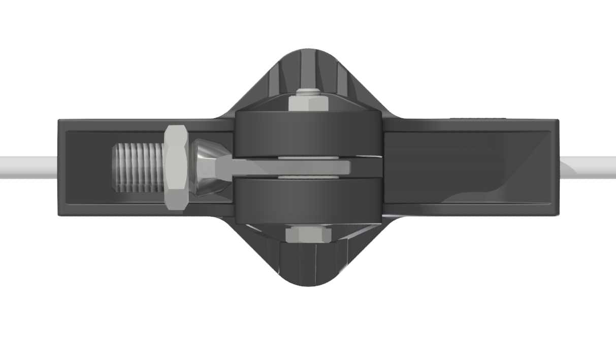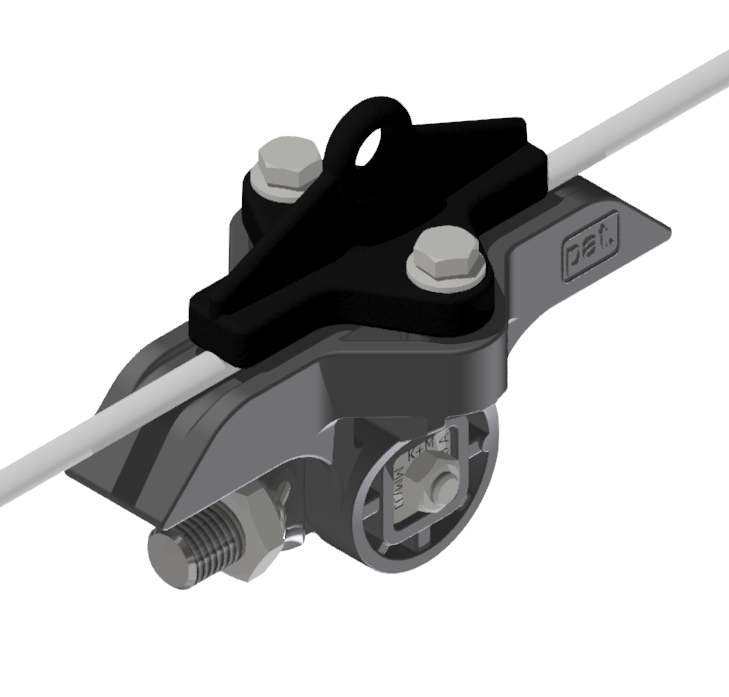 L’utilisation de ce type de pièce pour la suspension de ligne aérienne de contact nécessite des isolations supplémentaires entre les points de fixation.La fixation est possible sur câble acier galvanisé et sur câbles acier / cuivre.