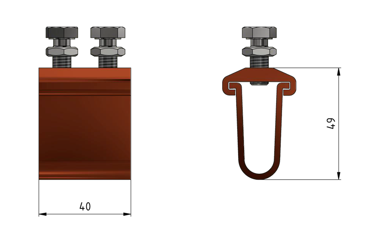 Bride de raccordement pour tube en cuivre, avec 2 vis