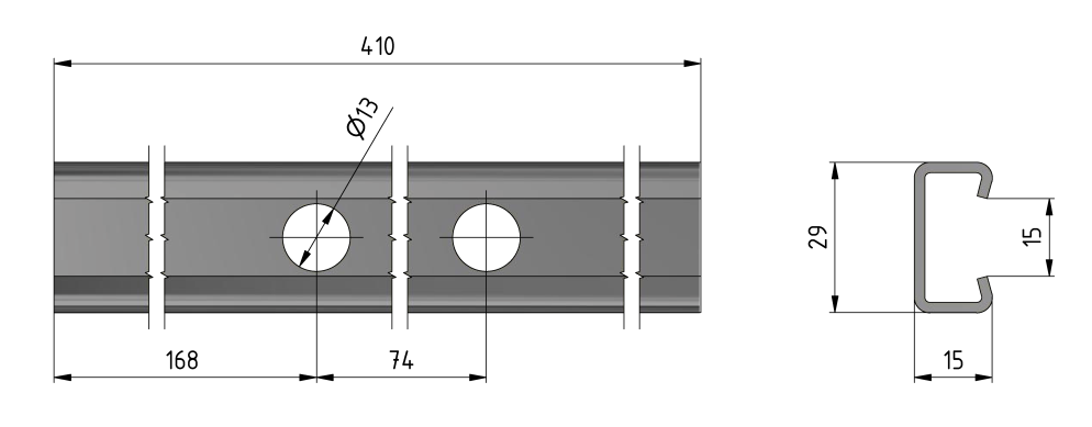 Rail de fixation sur tube G2", L = 410 mm