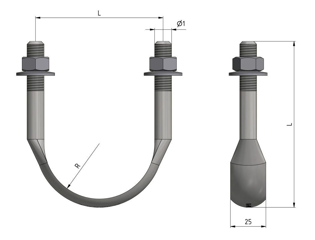 Etrier fileté M12 complet plat sur tube G2.5", L = 111 mm