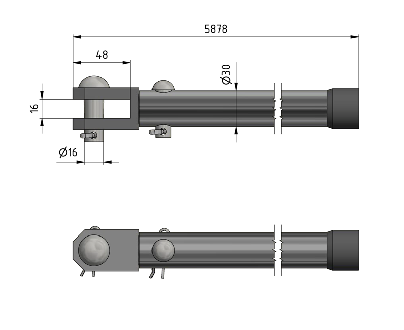 Tringlage de commande droit complet, L= 6000 mm, pour sectionneurs Duplex, à cornes et rotatif Alpha