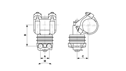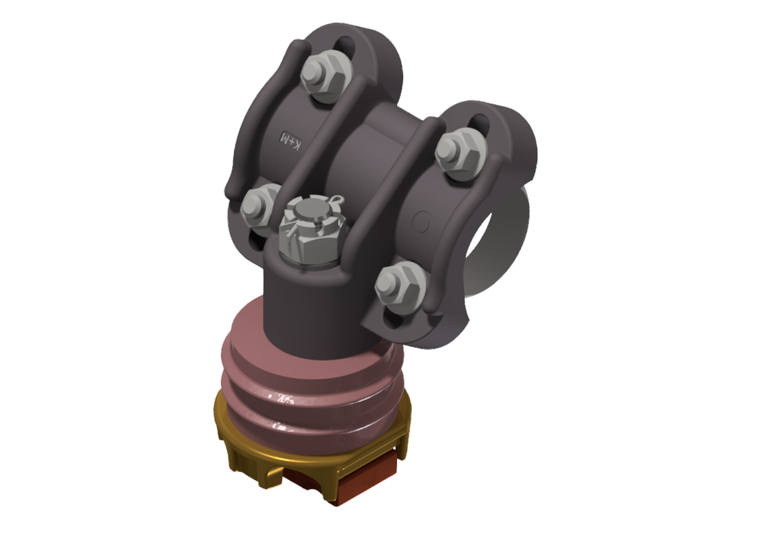 Suspension du câble porteur isolée, orientable, renversé, solide, sur tube 2", câbles Ø max. 21 mm