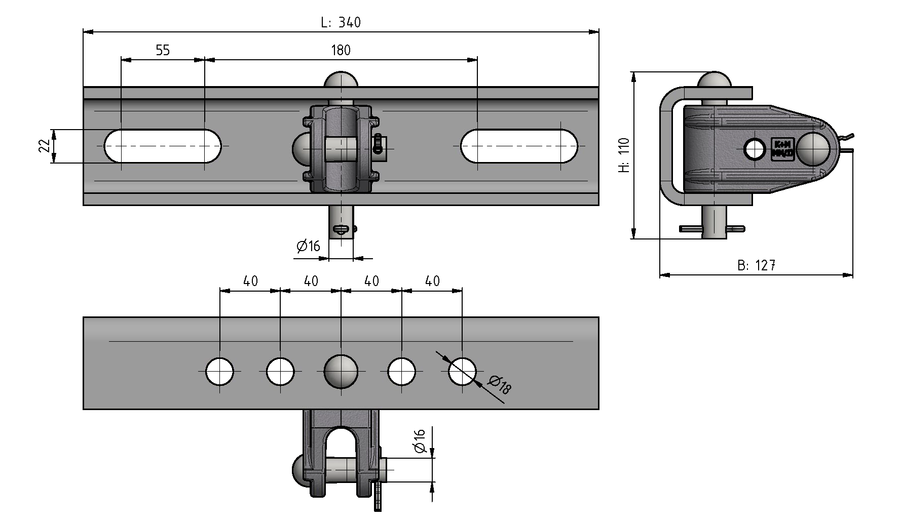 Traverse: acier galvanisé à chaudFourche: Aluminium
