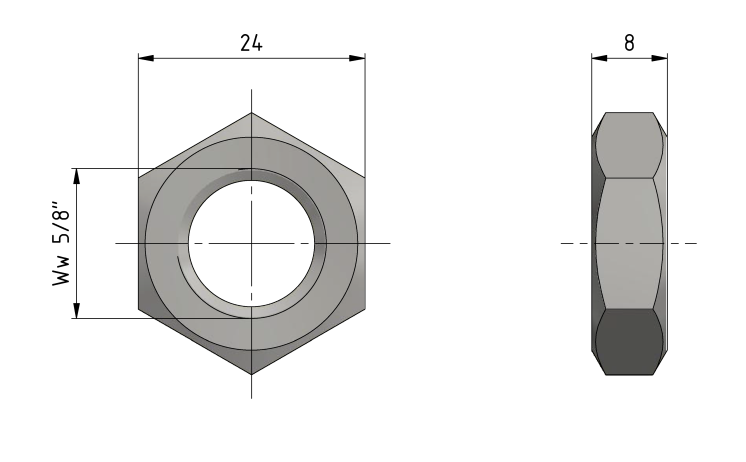 Ecrou hexagonal, Ww 5/8" x 0.5 filet à droite